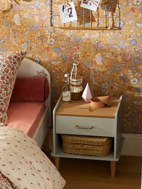 Un joli chevet aux codes sixties qui apporte une touche raffinée à la déco de chambre. Il dispose d’une niche et d’un tiroir avec poignée dorée pour ranger les livres et les affaires de votre enfant.
