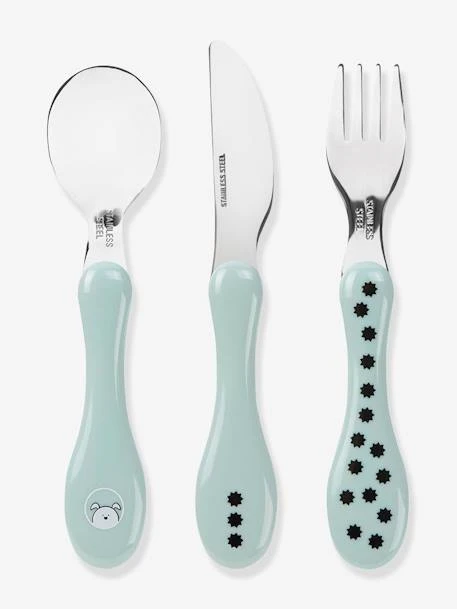 Pour accompagner l’enfant dans son apprentissage de l’autonomie et lui donner l’envie de manger tout seul comme un grand, voici un set de couverts complet (cuillère, fourchette et couteau) au joli décor ludique et une excellente idée de cadeau ! Réalisés en inox de haute qualité et résistants à la torsion, ces couverts ergonomiques sont conçus pour une prise en main aisée, pour les droitiers comme pour les gauchers, et parfaitement adaptés à la bouche des tout-petits.