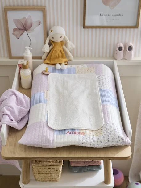 Un matelas à langer bien moelleux et rempli de tendresse pour le change de votre bébé. Son bel effet patchwork et ses couleurs douces promettent un change agréable et serein.