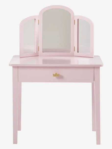 Pour votre petite princesse en devenir, voici la coiffeuse rêvée de toutes les petites filles ! Toute rose, avec un miroir triptyque pour se pomponner, un grand tiroir pour garder les secrets et une poignée en forme de couronne pailletée… On en connait une qui va faire des jalouses !