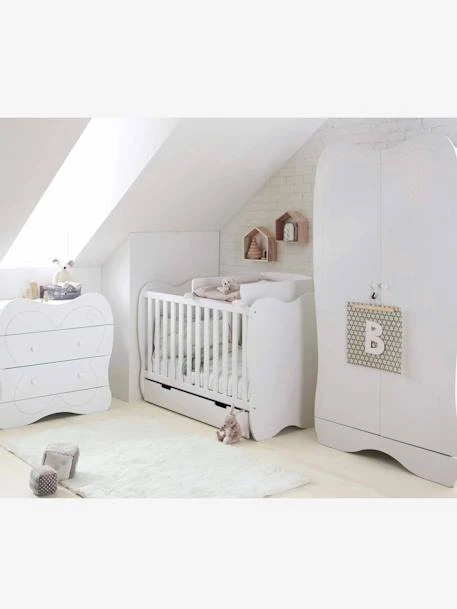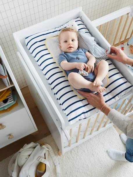 Un plan à langer gain de place en pin massif bien solide, compatible avec la majorité de nos lits bébé.